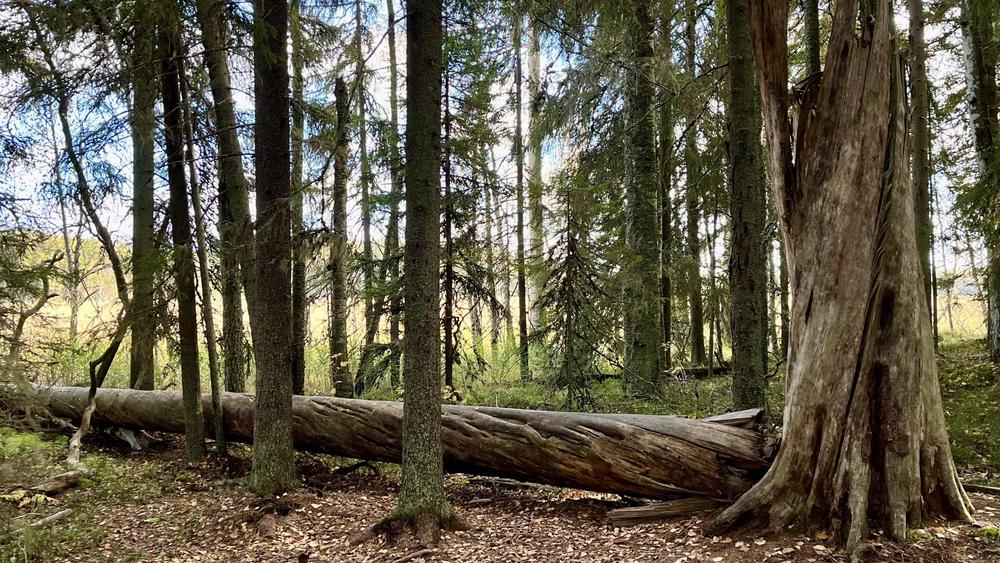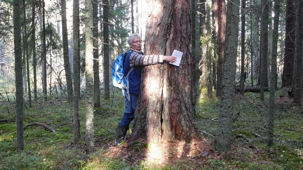 Olavin ja puun tapaaminen karpaloretkellä, kuva Maarit Vesanen.