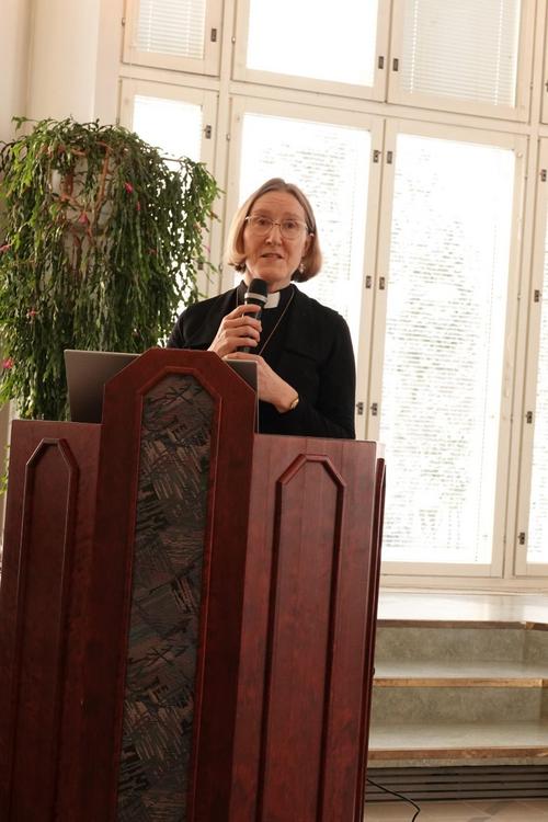 Uutta kirkkomuseota esitteli projektityöntekijä Jenni Jokela. Paikalla oli yli 30 senioria.