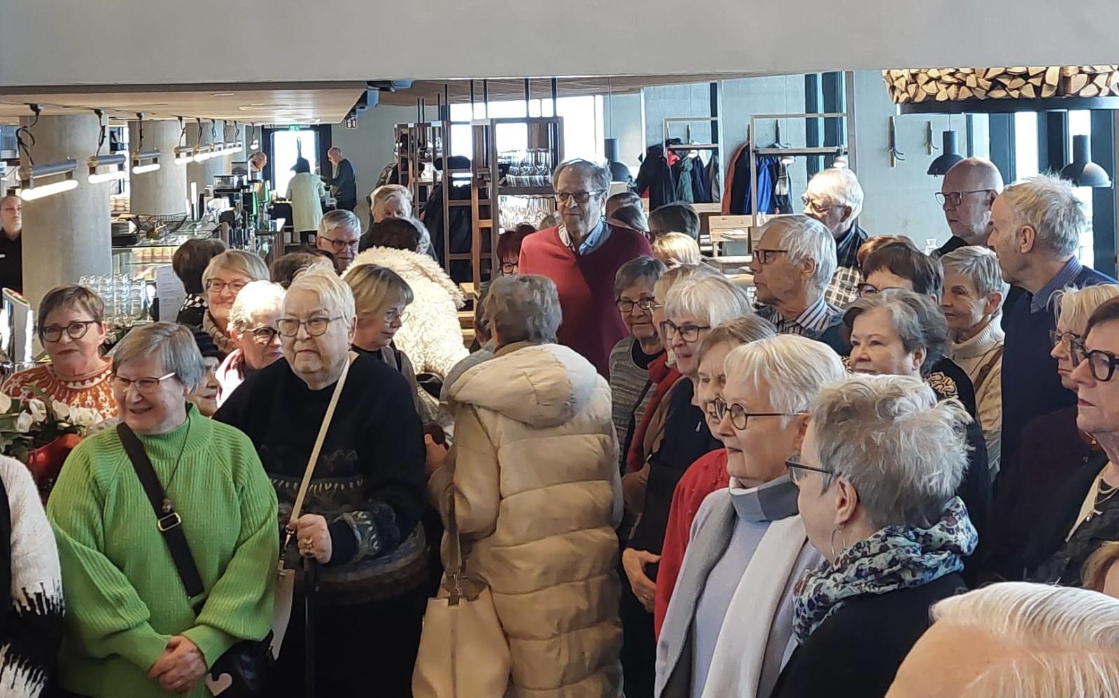 12.2.2026 Yli 30 senioria ystävänpäivän kahvittelijaa kokoontui Jämsän Puukoulun kahviossa
