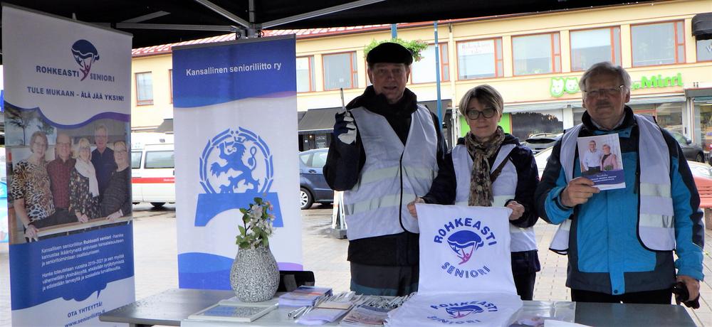 Jämsän senioreita kuvassa, Outi ja Erkki Reponen ja Rauli Jakobsson.