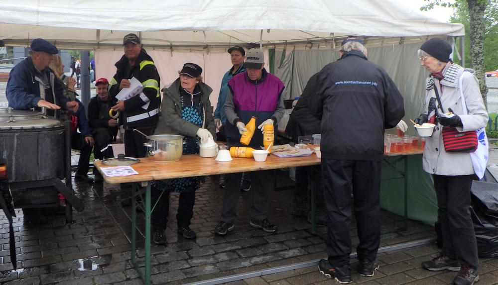 Seniorijäsenet Jouni ja Liisa Mäkelä olivat juuri nauttineet hernerokkaa, jota oli tarjolla tapahtumassa.