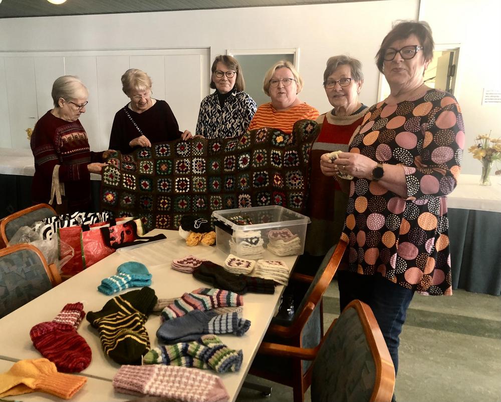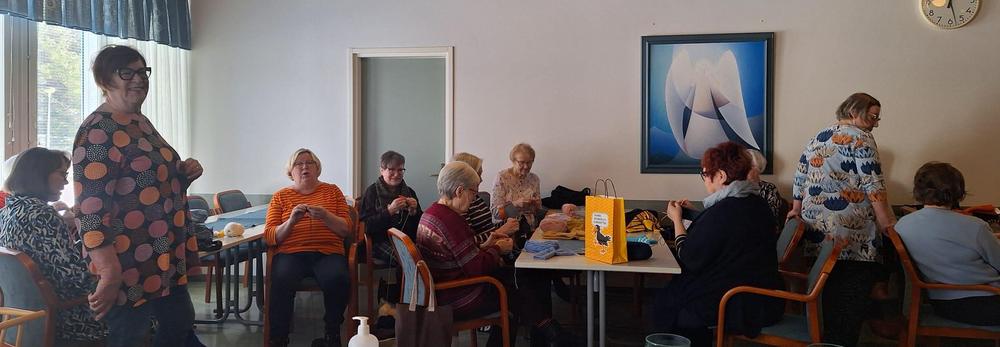 Käsityökerhossa tehdään mm. sukkia ja hartiashaaleja, jotka lahjoitetaan Seppolan palvelutaloihin.